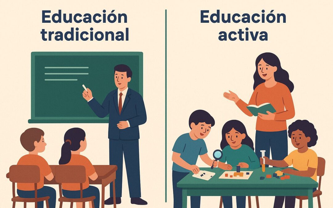 🌱 Aunque no se puede hablar de bueno y malo, es claro que hay dos maneras muy distintas de entender cómo aprenden los niños y cómo se preparan para el futuro: en la educación tradicional, el foco está en el profesor: explica, transmite, evalúa. Los alumnos reciben información, memorizan contenidos y repiten procesos. Durante décadas funcionó, pero,¿responde a las necesidades del mundo actual?